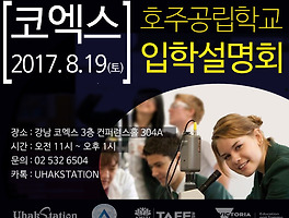 | [코엑스 호주유학 08.19(토)] 호주 초,중,고교 - 호주공립학교 입학설명회 무료초대 (0) | 2017.08.04 |
