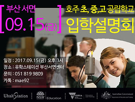 | [09.15(금) 부산 서면] 호주조기유학세미나 & 호주 초,중,고 공립학교 입학설명회 초대글 (0) | 2017.08.28 |